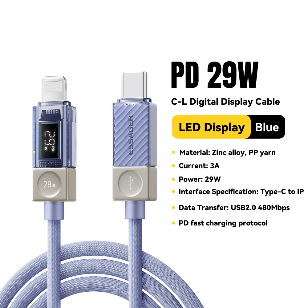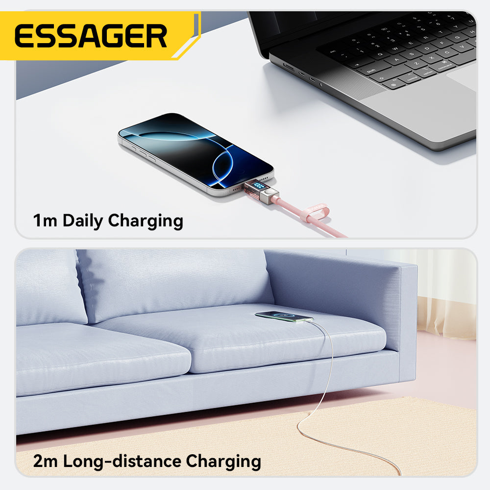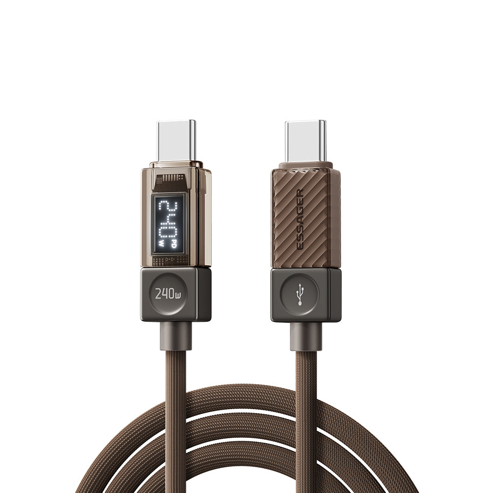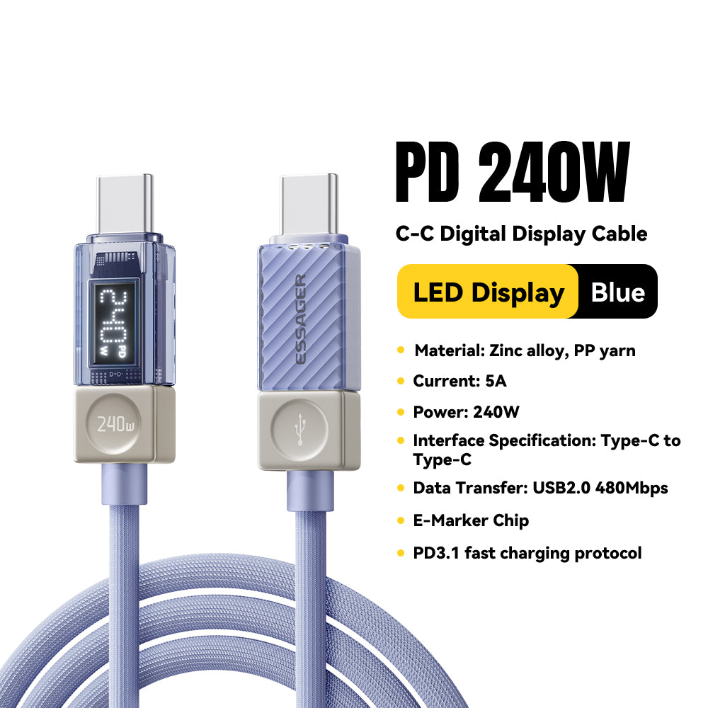 ESSAGER 240W Transparent USB-C Charging Cable – With Power Display