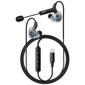 ESSAGER Type-C Earphones – Built-in Sound Card, Wired Control for Karaoke
