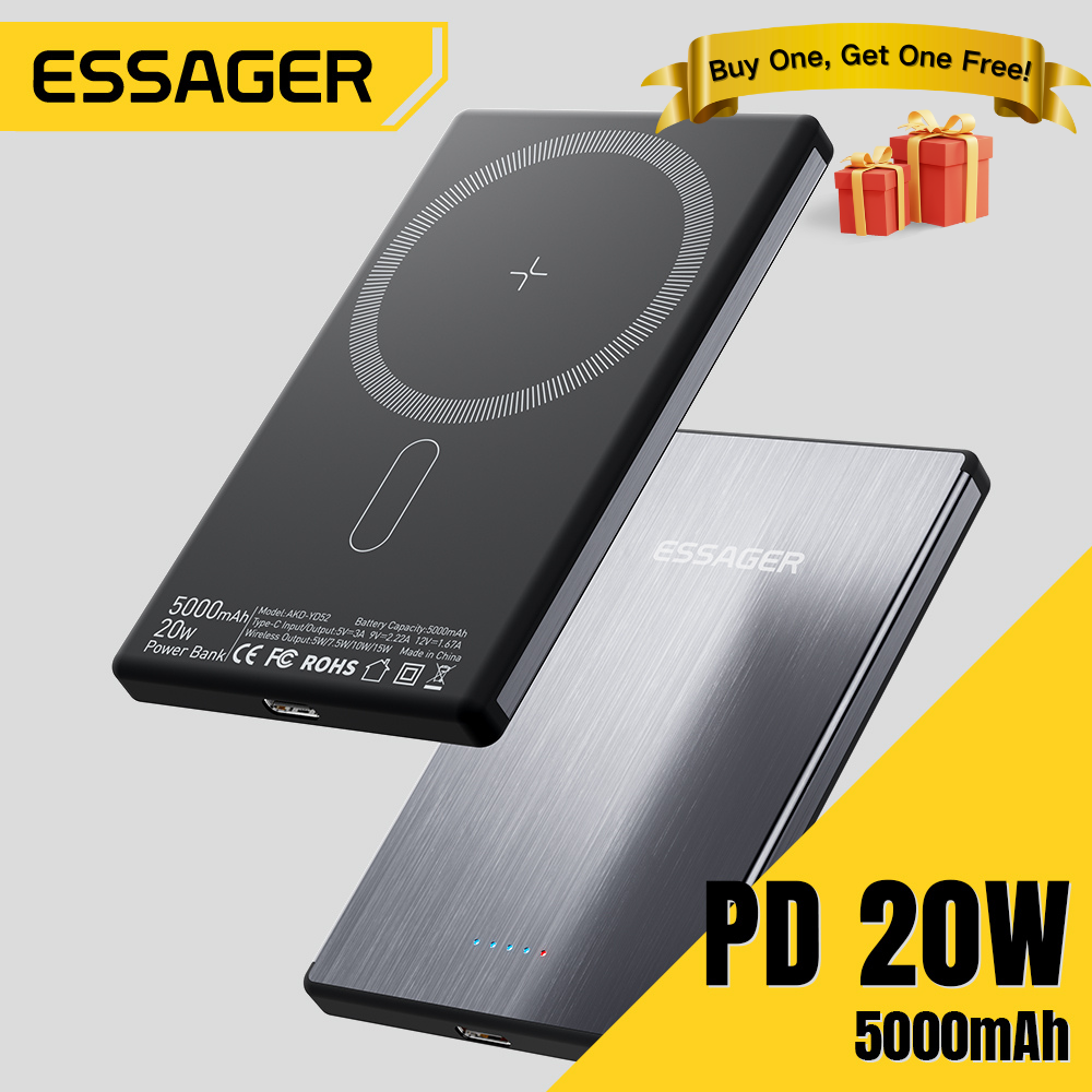 (Bundle)🔥Buy 1 Get 1 Free – Today Only!🔥ESSAGER Shangyue PD 20W 5000mAh Magnetic Wireless Power Bank