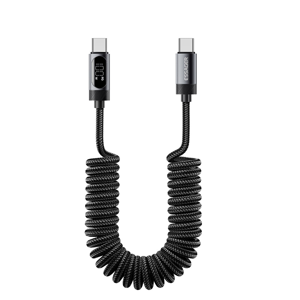 ESSAGER USB-C to USB-C 100W Spring Data Cable with Digital Display