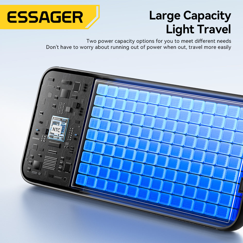 ESSAGER 20000mAh Power Bank – 22.5W Fast Charge + Built-in Cable + LED Display