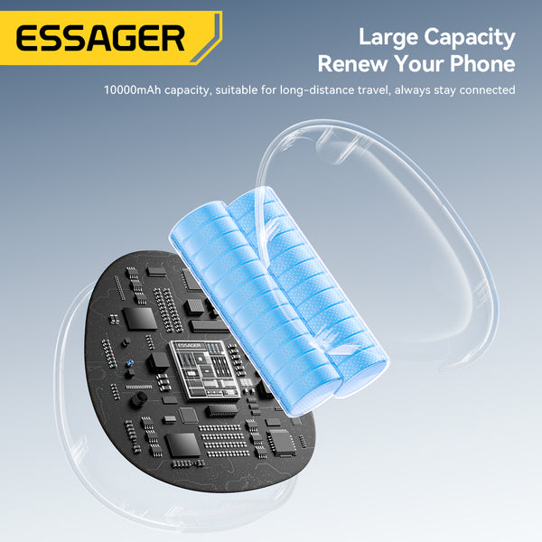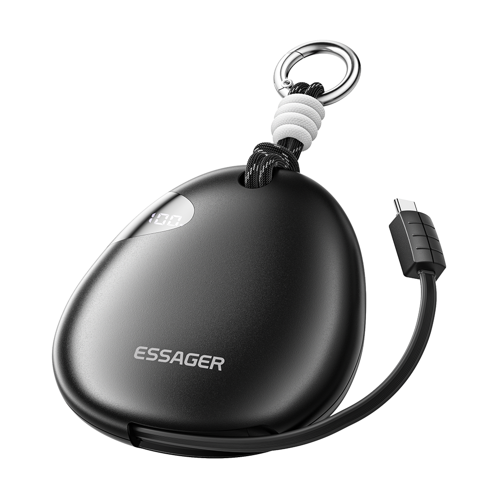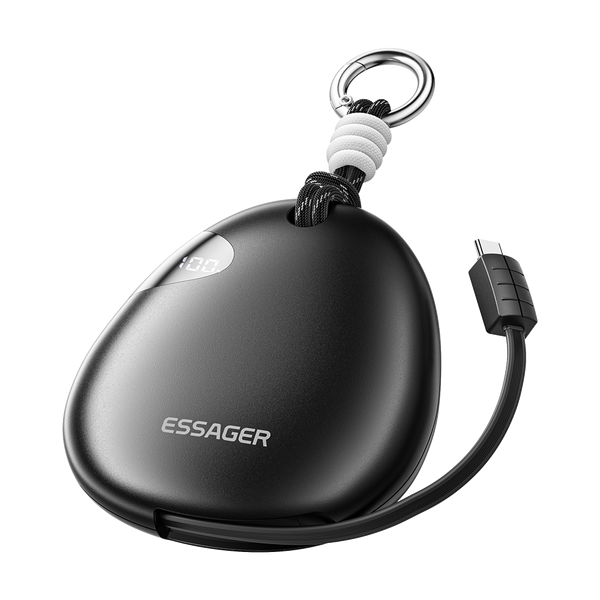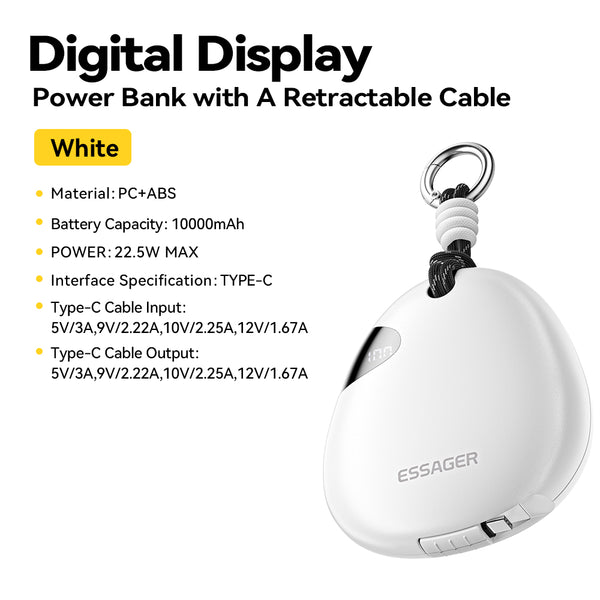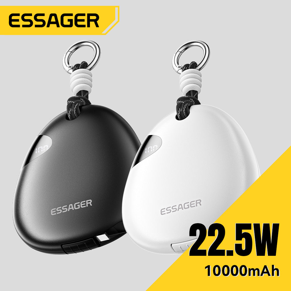 Essager 10000mAh Digital Display Power Bank with Retractable 22.5W Fast Charger Built in Lighting SOS for Outdoor iPhone Xiaomi