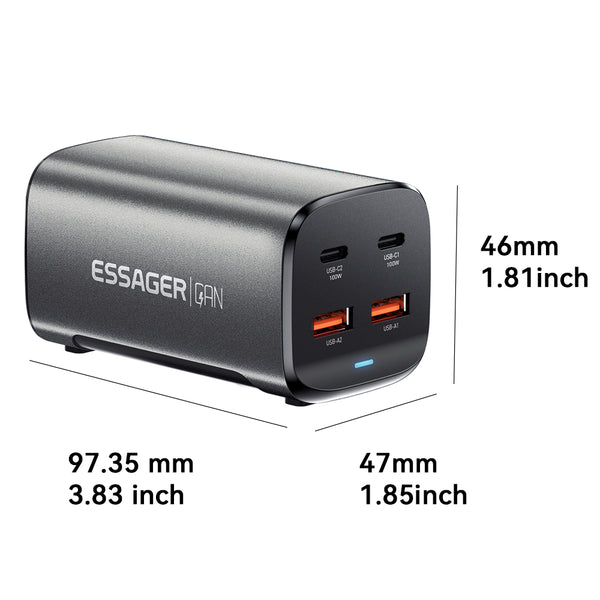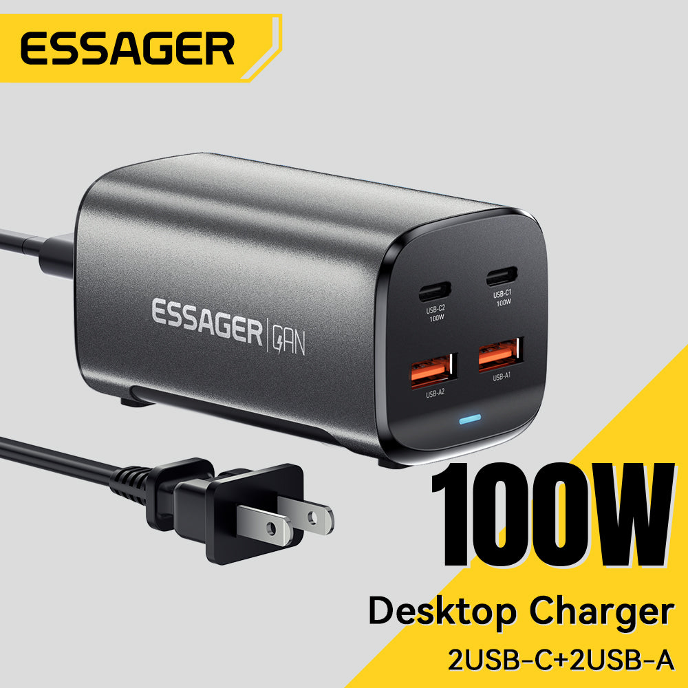 Essager 100W GaN Charger Desktop Laptop Fast Charger 4 in 1 Adapter For iPhone 15 14 13 Pro Max Phone Charger Xiaomi Samsung