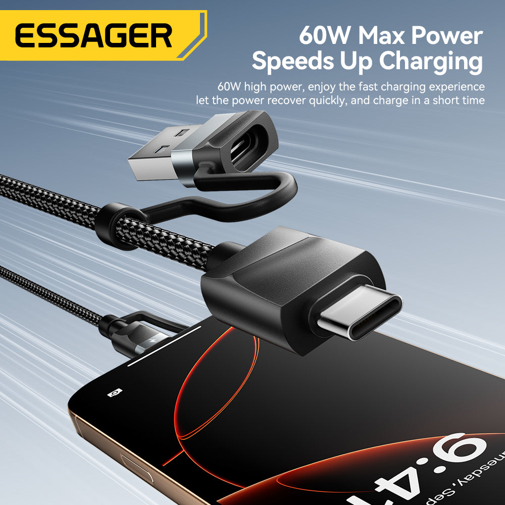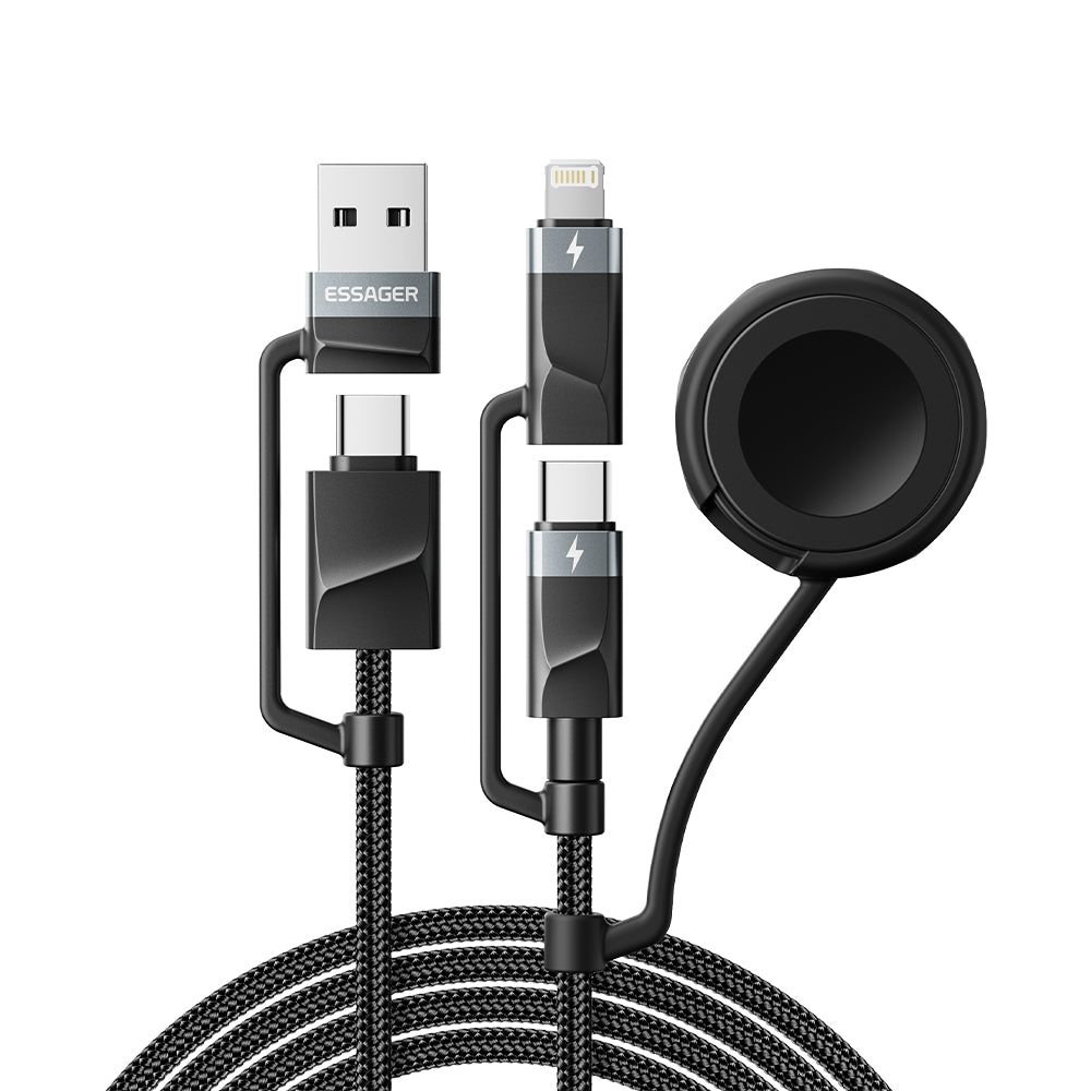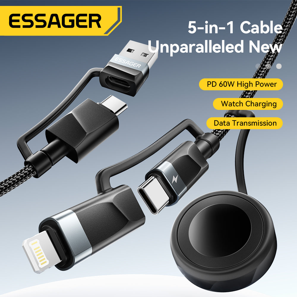 Essager 5-in-1 USB-A/Type-C to Type-C/Lighting/Watch PD 65W Fast Charging For iPhone16 15 14 Xiaomi MacBook iPad Tablet Laptop