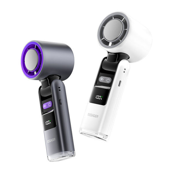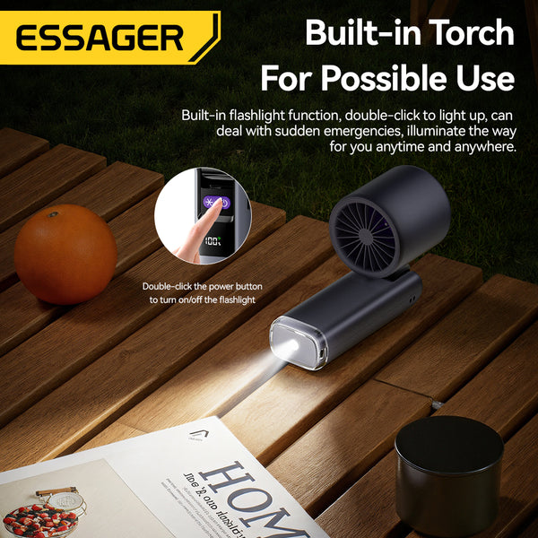 Essager Portable Handheld Turbo Fan 100 High Speed Foldable Fan Handheld Adjustable USB C Rechargeable Fan with Display Screen